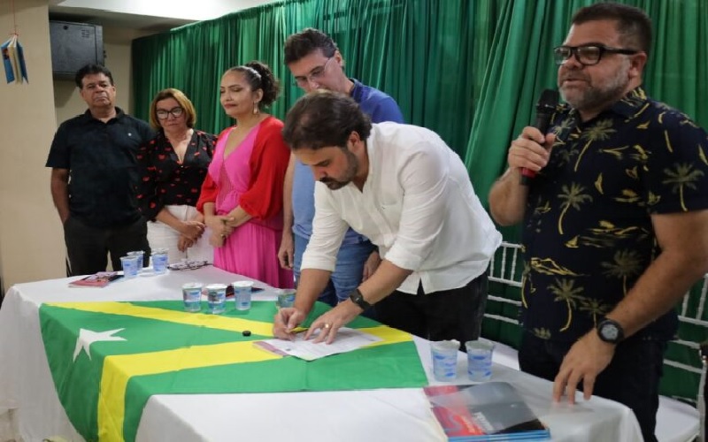 (Foto: Reprodução) – Prefeito Toni Cunha e vice João Tatagiba assinaram o termo de implantação do fundo do Conselho de Políticas Culturais em evento na quarta-feira (30)