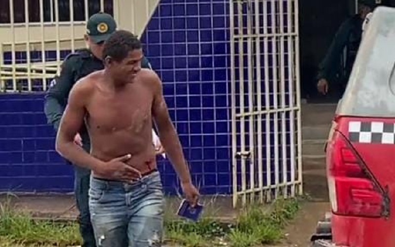 Homem agride esposa em frente a criança, leva facada no abdômen e acaba preso pela PM em Novo Progresso-PA. (foto:Reprodução tv progresso)