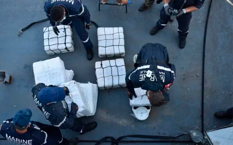 Do total da cocaína apreendida na França em 2022, 55% veio das Antilhas e da Guiana Francesa, uma zona de trânsito. Outras remessas passam pela África Ocidental antes de seguirem para a Europa.