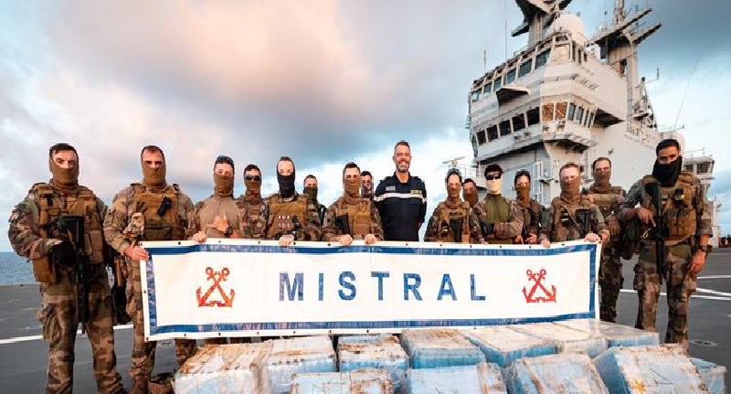 A ação contou com o apoio de helicópteros e de um drone. O barco, que segundo as autoridades, tinha 15 metros de comprimento, havia deixado a costa sul-americana dias antes da localização da droga. Depois de descoberta e apreendida, a cocaína foi transportada ao porta-helicópteros anfíbio Mistral (PHA) da Marinha Francesa para ser destruída.