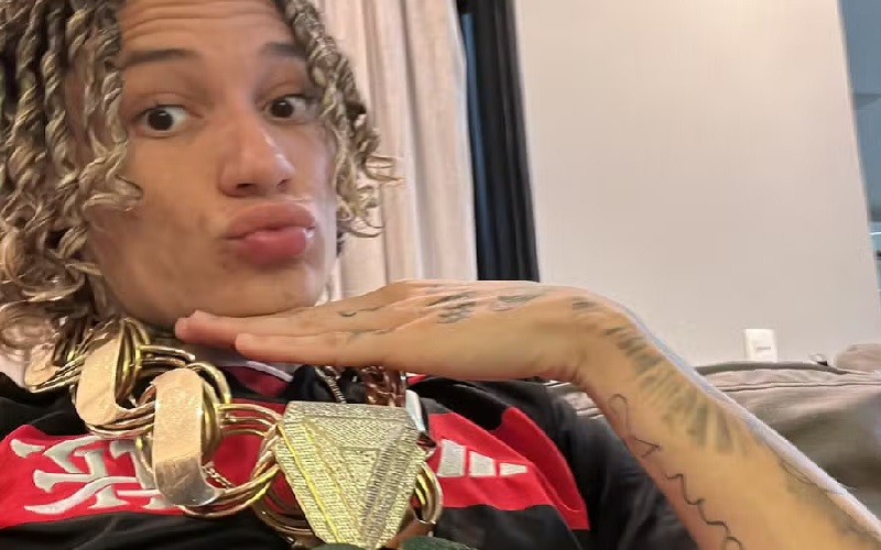 Natanael Cauã Almeida de Souza, de 19 anos, conhecido como MC Chefin, posou com seu cordão de ouro com símbolo do trevo-de-quatro-folhas, que havia sido apreendido pela polícia na última quinta-feira (18).