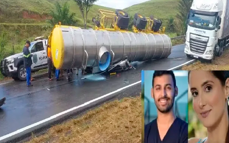 Foto: Reprodução | Na manhã desta sexta-feira (2), um trágico acidente na BR-101, em Flexeiras, no interior de Alagoas, resultou na morte de uma médica e um estudante de medicina. O carro em que eles estavam foi esmagado por um caminhão-tanque que tombou na rodovia. Outra médica que estava no carro sobreviveu ao acidente.