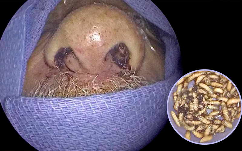 Médico retira 150 larvas do nariz e dos seios da face de paciente nos EUA