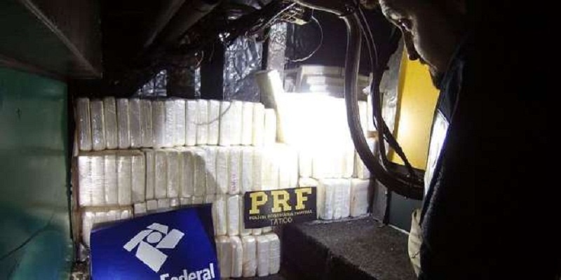 A droga foi encontrada durante a fiscalização da PRF. Ela estava em um fundo falso do veículo, localizada debaixo do assoalho próximo ao sanitário do ônibus.