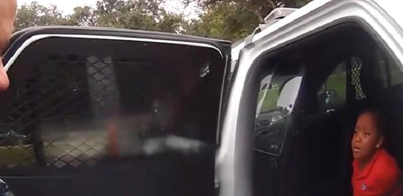 Police body-camera footage shows the moment a police officer in Orlando, Florida arrests a six-year-old girl from her school and secures her wrists with cable ties.