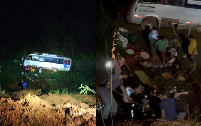 Micro-ônibus da Saúde de Uruará tomba na BR-230; duas pessoas morrem e várias ficam feridas