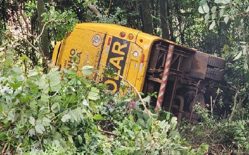 Um micro-ônibus utilizado para o transporte de estudantes de Capinzal, no Meio-Oeste de Santa Catarina, caiu em uma ribanceira, no final da tarde de quinta-feira (7). Apesar da gravidade do acidente, ninguém ficou gravemente ferido.