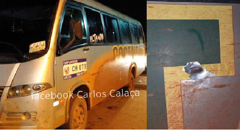 Micro ônibus foi alvejado na tentativa de assalto.