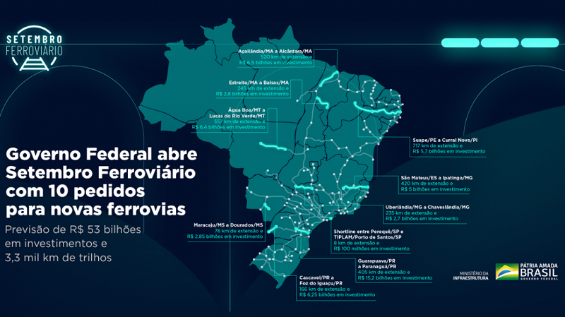 De acordo com o ministério, ao todo, os pedidos de construção de novas ferrovias abrangem 3,3 mil quilômetros (km) de trilhos, com investimentos previstos em R$ 53 bilhões ao longo dos próximos anos. Além de Mato Grosso, as novas ferrovias vão cortar cidades do Espírito Santo, Maranhão, Mato Grosso do Sul, Minas Gerais, Paraná, Pernambuco, Piauí e São Paulo.