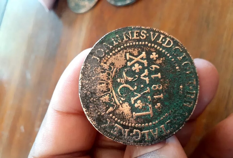 Imagens que circulam nas redes sociais mostram moradores com carrinhos de mão cheios com as moedas. Nos itens, é possível ver que uma delas é datada de 1819, época em que o Brasil ainda era colônia portuguesa.