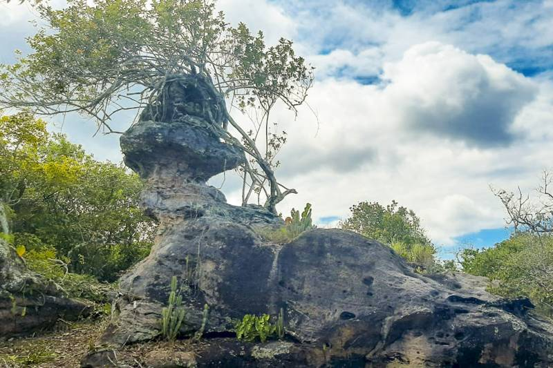 “Ficamos sabendo dessa pedra no final do ano passado, por um condutor que postou essa foto em um grupo da Associação de Condutores, e o doutor Nelsi Sadeck disse que sempre teve vontade de encontrar, iniciando uma busca. Só que, infelizmente, seu Sadeki não resistiu à pandemia e veio a óbito por Covid. Desde então, foi questão de honra achar a pedra. Na última terça-feira, encontramos no Parque, entre a Pedra do Mirante e a Itatupaóca, uma caverna que é atração do Pema”, informa o condutor do Parque Estadual Monte Alegre, Ilivaldo Castro.