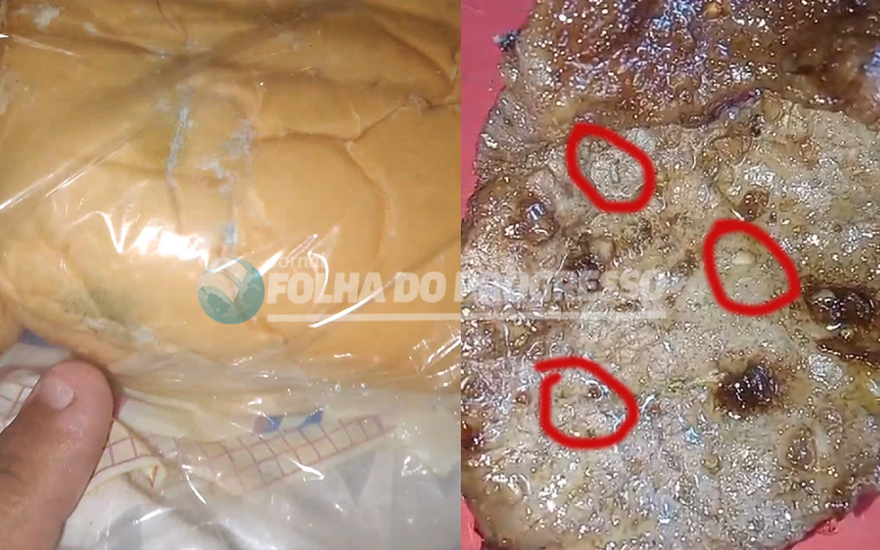 Segundo o relato, ao comprar carne e pão em um dos mercados da cidade, ela se deparou com uma situação revoltante ao chegar em casa: a carne estava infestada de larvas e o pão, embora dentro do prazo de validade, estava completamente mofado.