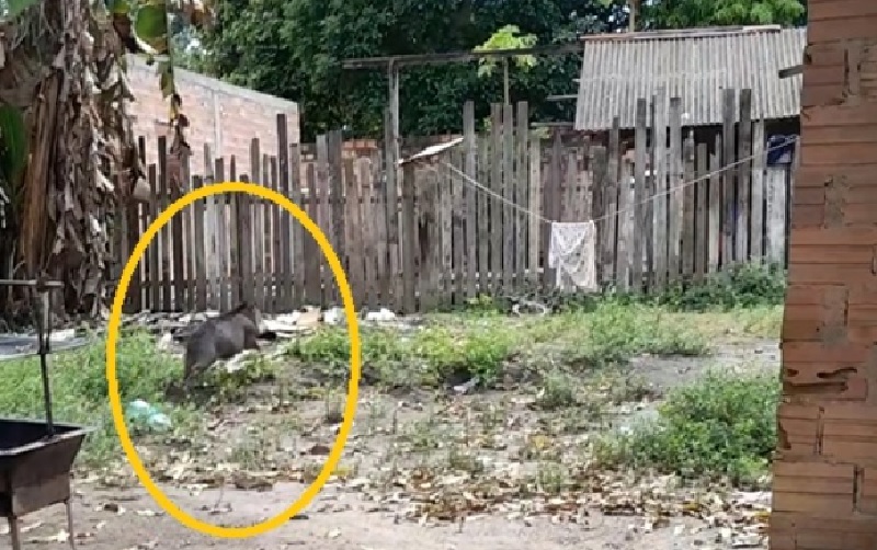 Pela manhã foi possível ver quem, ou o quê estava causando todo aquele barulho e logo que eles perceberam que se tratava de porcos-do-mato, começou a correria.
