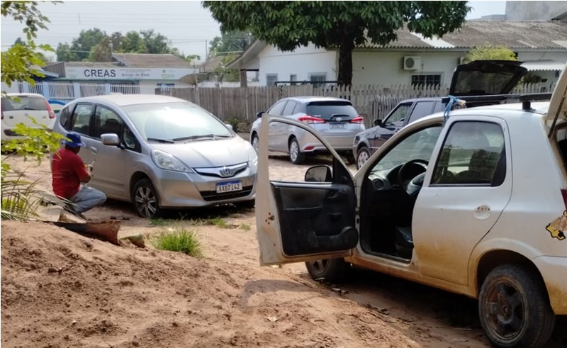 Veiculo ficou danificado ao trafegar pela rua de pedra em Novo Progresso. – (Foto>Via WhatsApp)
