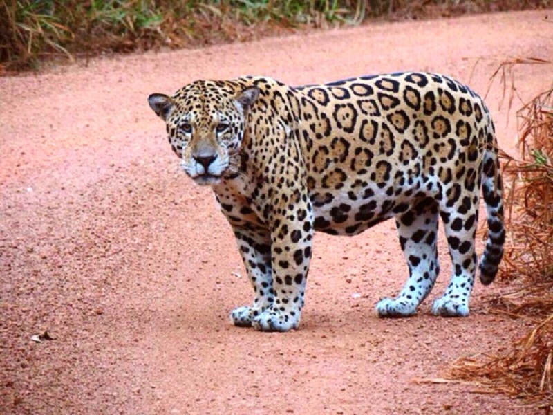 O registro de uma onça pintada de porte adulto ocorreu em uma estrada rural pela moradora de Novo Mundo (297 quilômetros de Sinop), Ivonete Gross Philippsen. Ela contou, ao Só Notícias, que o animal era um macho e permitiu que se aproximasse com o veículo.