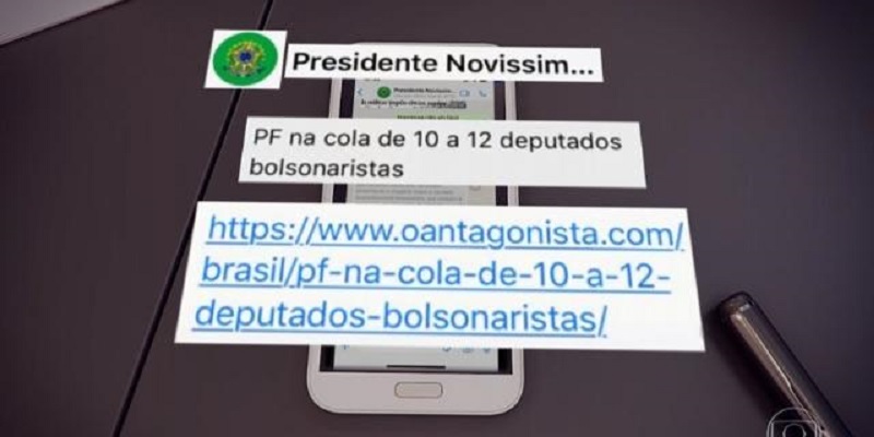 Na mensagem, o presidente compartilha uma nota do site O Antagonista intitulada “PF na cola de 10 a 12 deputados bolsonaristas” e pede na sequência a Moro: “mais um motivo para a troca”. A troca se referia à demissão de Maurício Valeixo da direção-geral da Polícia Federal.
