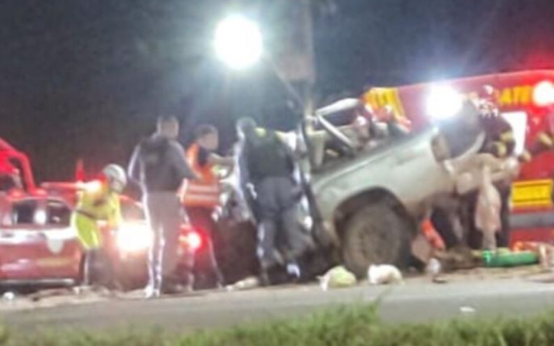 A S10 teve a parte frontal destruída, enquanto a Hilux ficou tombada na pista. A rodovia foi interditada e o fluxo de veículos desviado para via marginal.