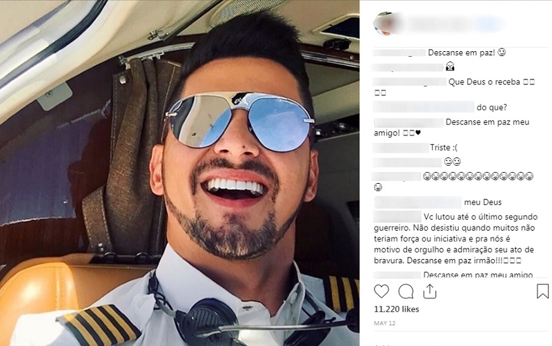 O piloto Cristiano Felipe Rocha Reis, que havia sobrevivido à queda de um avião no Pará, morreu nesta quinta-feira (30), no Hospital de Urgências Governador Otávio Lage de Siqueira (Hugol), em Goiânia. Várias pessoas lamentaram a morte dele nas redes sociais, entre elas, o cantor Rodolffo, da dupla com Israel, que era amigo dele (assista vídeo abaixo).