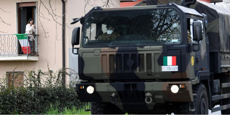 Caminhão do Exército para transporte de caixões em Seriate, na Itália (Foto:Flavio Lo Scalzo / REUTERS)