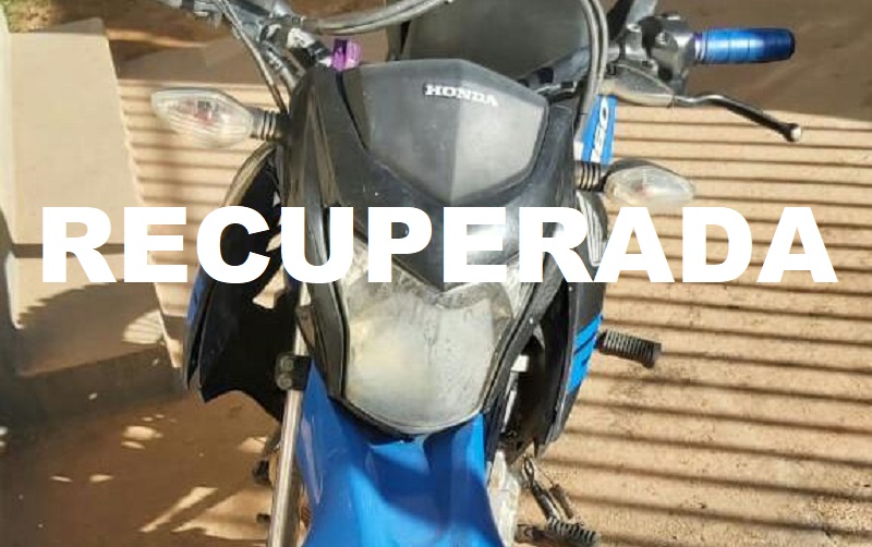 Uma motocicleta roubada na Orla do Lago em 2019 na cidade de Novo Progresso foi recuperada na tarde deste sábado (03).(foto:Divulgação Policia)
