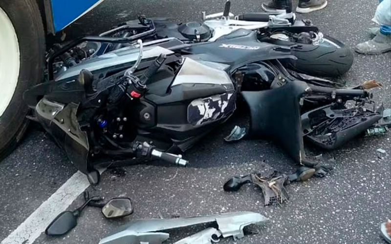 Moto ficou destruída no acidente — Foto: Reprodução/Redes Sociais