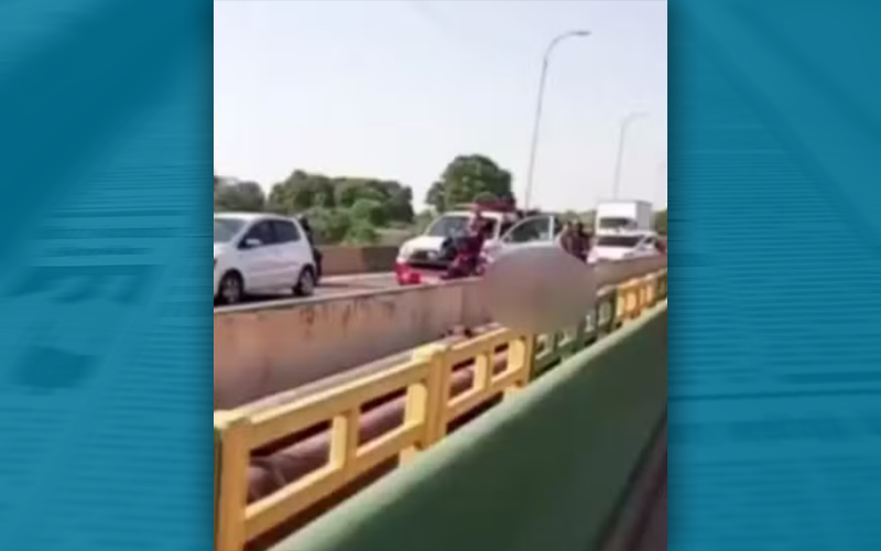 Corpo ficou entre os dois sentidos da ponte. — Foto: Reprodução / TV Liberal