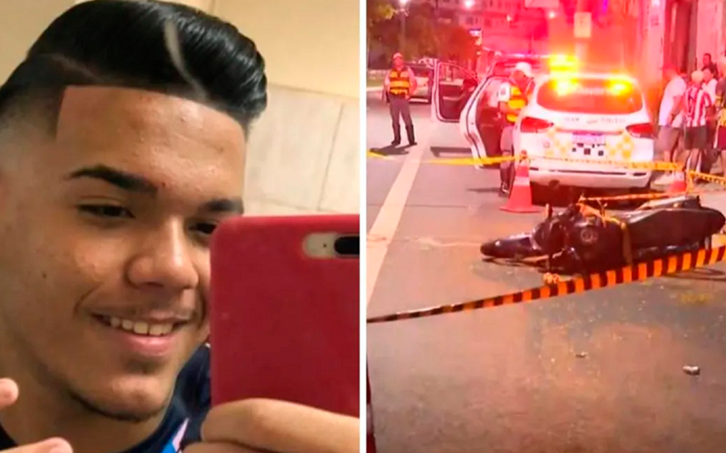 O jovem teve um ferimento profundo no pescoço e caiu da moto junto com a namorada. Pessoas que estavam na via tentaram estancar o sangramento com um pano, mas não conseguiram.