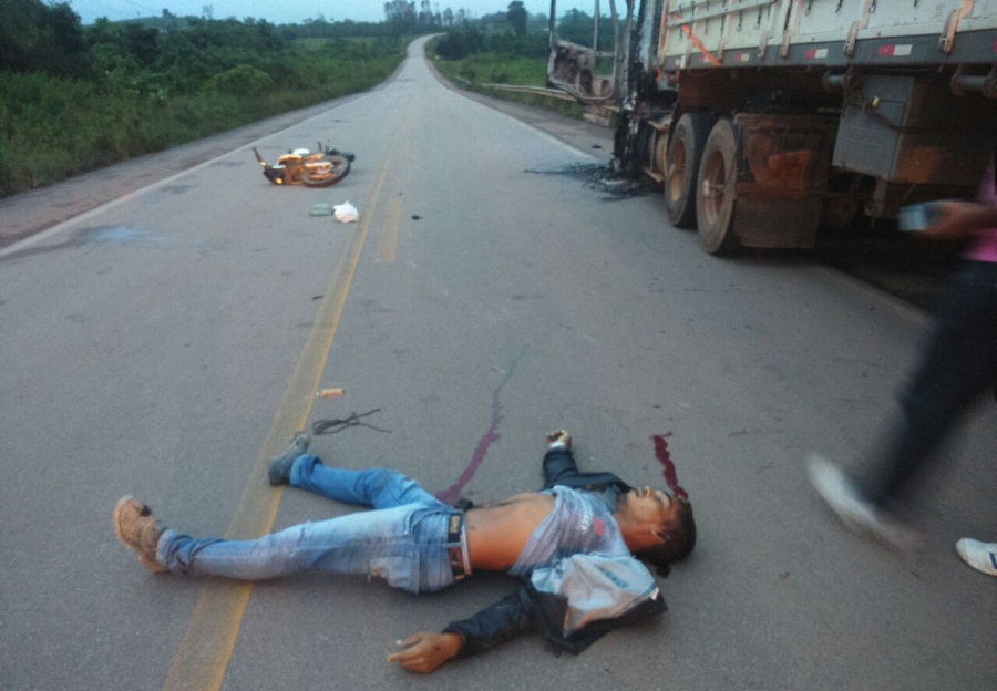 O motociclista Domingos da Conceição, 25 anos, morreu na hora, ao colidir a moto Honda XR 250 Tornado, cor branca, ano 2003, placa MTB 1250, chassi 9C2MD34003R105064, na traseira da carreta IVECO FIAT 450 37T, ano 2000/01, placa CYB 3267, a ocorrência foi atendida pela guarnição da Policia Militar sob o comando do cabo Serra e composta pelo cabo Carlos e cabo Ricardo , o acidente foi comunicado a policia civil para providencias. o Acidente aconteceu por volta das 06h10mn deste domingo (16), distante seis km da cidade sentido Mato grosso na rodovia BR-163 em Novo Progresso.