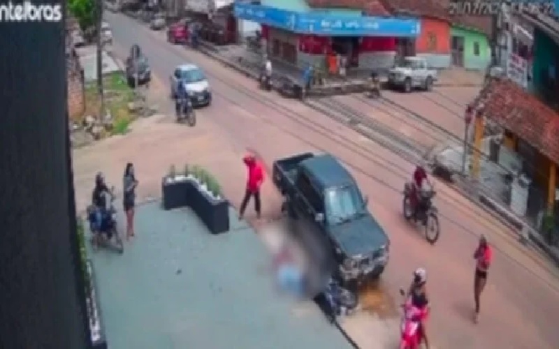 Nas imagens, é possível ver o condutor da motocicleta Yamaha Crosser, de cor bege, subindo pela Travessa 15 de Agosto quando o motorista da caminhonete avançou na preferencial da 7ª Rua e colidiu com ele.