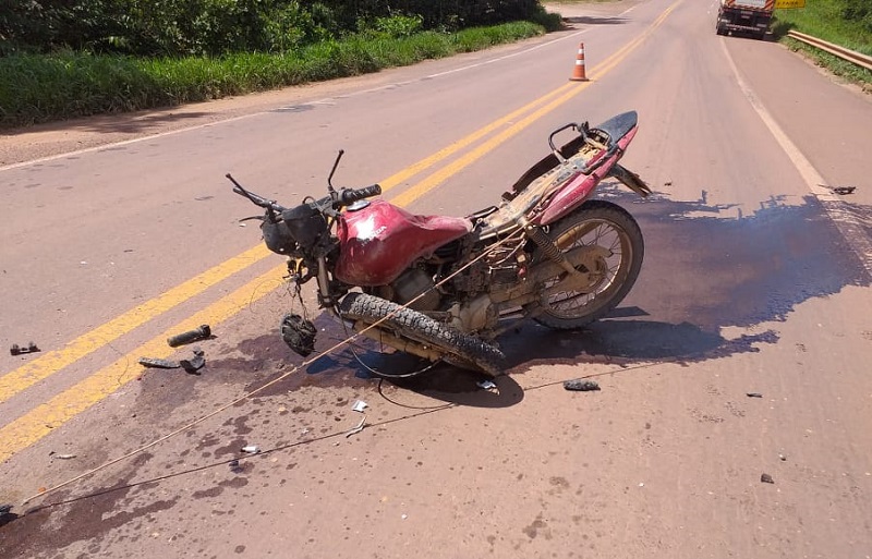 Motoqueiro morre esmagado por carreta em acidente entre Moraes e Aruri na Br 163