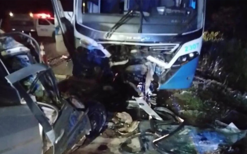 Segundo os policiais, o ônibus tentou fazer uma ultrapassagem e acabou colidindo frontalmente com o Pálio, que seguia no sentido contrário.