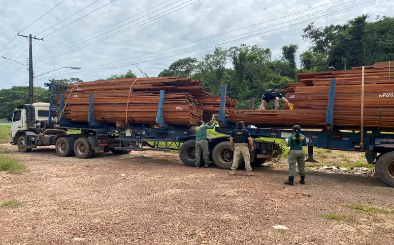 De acordo com a PRF, equipes estavam fazendo abordagens de rotina quando pararam o caminhão, ao qual estavam atrelados dois semirreboques transportando cerca de 37m³ de madeira do tipo Maçaranduba.