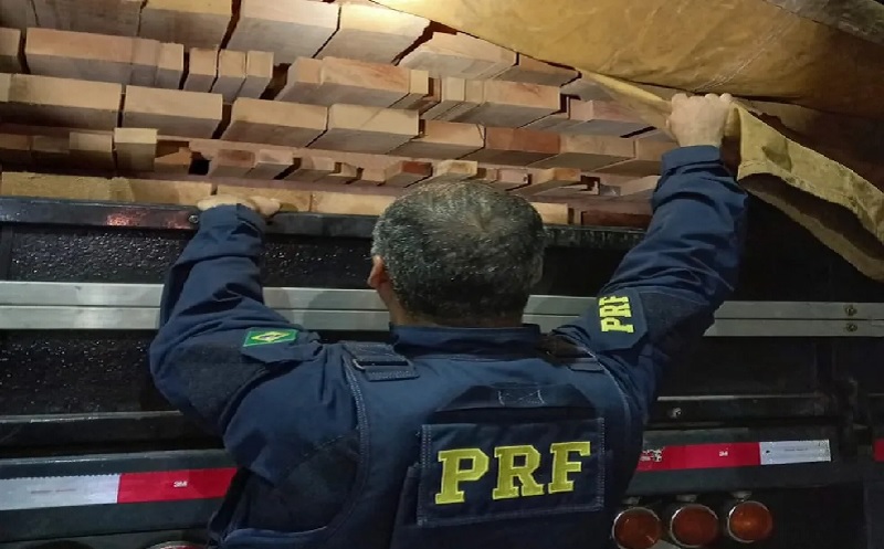 A PRF pontuou que foi atestada fraude na documentação da carga cedida pelo condutor, na tentativa do suspeito legalizar a madeira sem procedência.