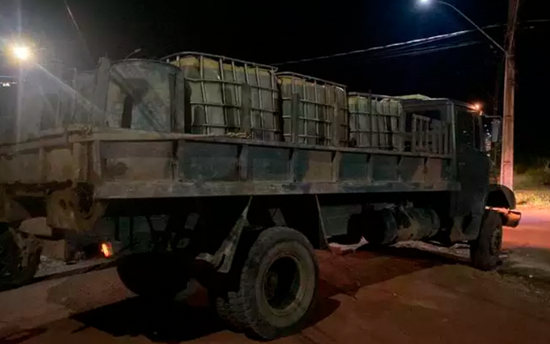 A PF identificou que um caminhão estaria transportando combustível de forma irregular. Quando ele parou para abastecer, a equipe policial confirmou o flagrante de crime contra a ordem econômica.