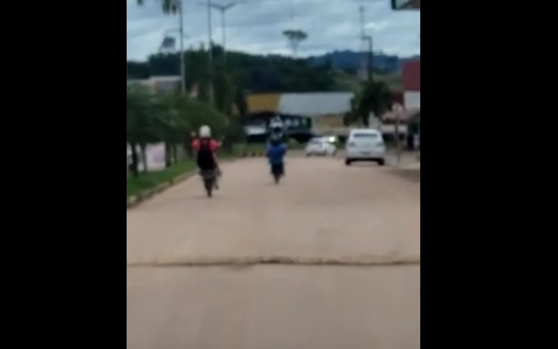 No vídeo duas motos seguem pela avenida uma delas sai empinando até cruzar a rotatória da avenida jamanxim com Orival Prazeres. De acordo com o motorista, esta cena é constante nas ruas de Novo Progresso, a polícia tinha que coibir isto, relatou.
