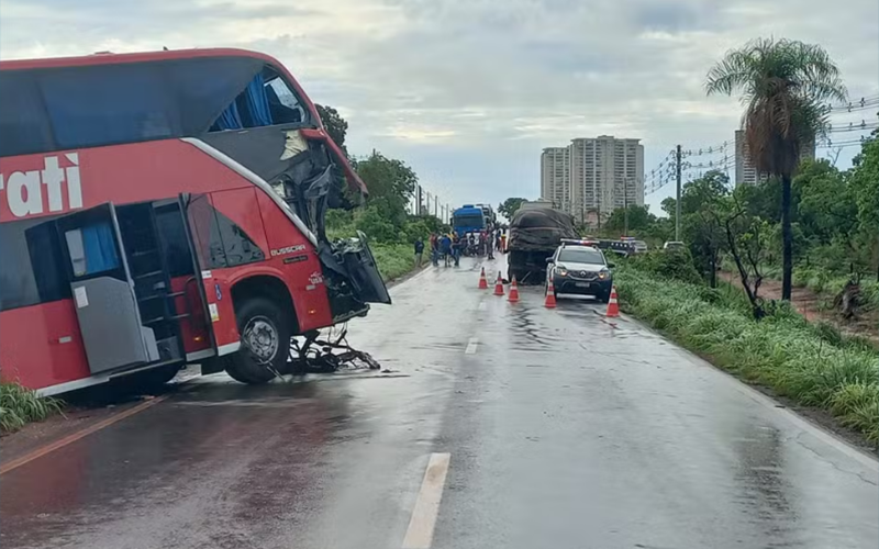 Segundo o Corpo de Bombeiros de Mato Grosso (CBMMT), o motorista do ônibus ficou preso às ferragens, não resistiu aos ferimentos e morreu ainda no local.