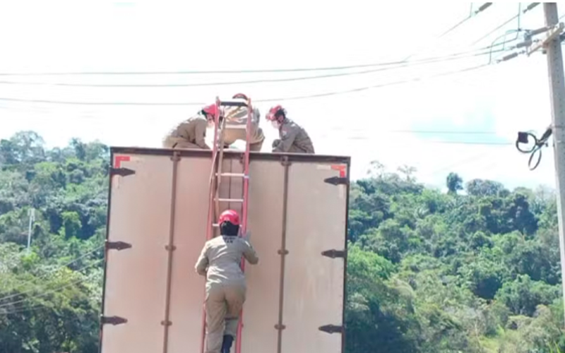 O corpo de bombeiros fez a retirada do corpo de cima do caminhão. A Polícia Militar foi acionada e isolou o local para garantir a segurança até a chegada da Polícia Científica.