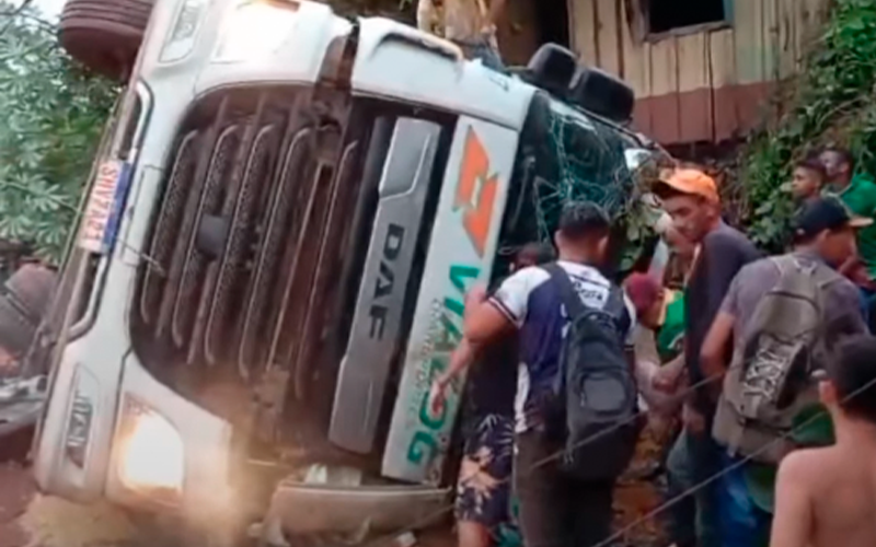 Motorista perde controle de carreta, colide e tomba em residência no distrito de Miritituba-Pará; vídeo
