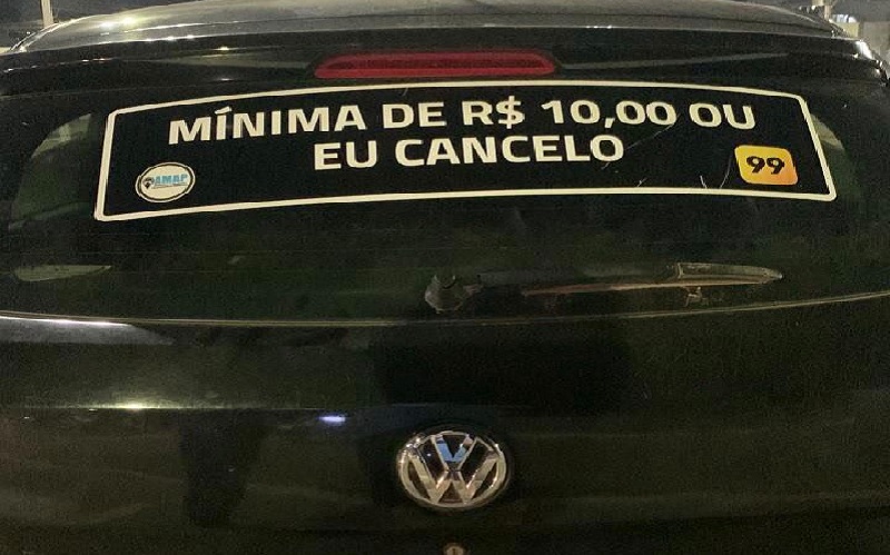 (Foto:Reprodução) – Desde a última segunda-feira (30), que motoristas que atuam em veículos de aplicativo iniciaram uma campanha pelas ruas de Parauapebas ameaçando cancelar qualquer tipo de corrida que seja taxada em menos de R$ 10,00. Vários carros estão circulando pelas ruas da cidade com adesivos com a seguinte frase: “Mínima de R$ 10,00 ou eu cancelo”.