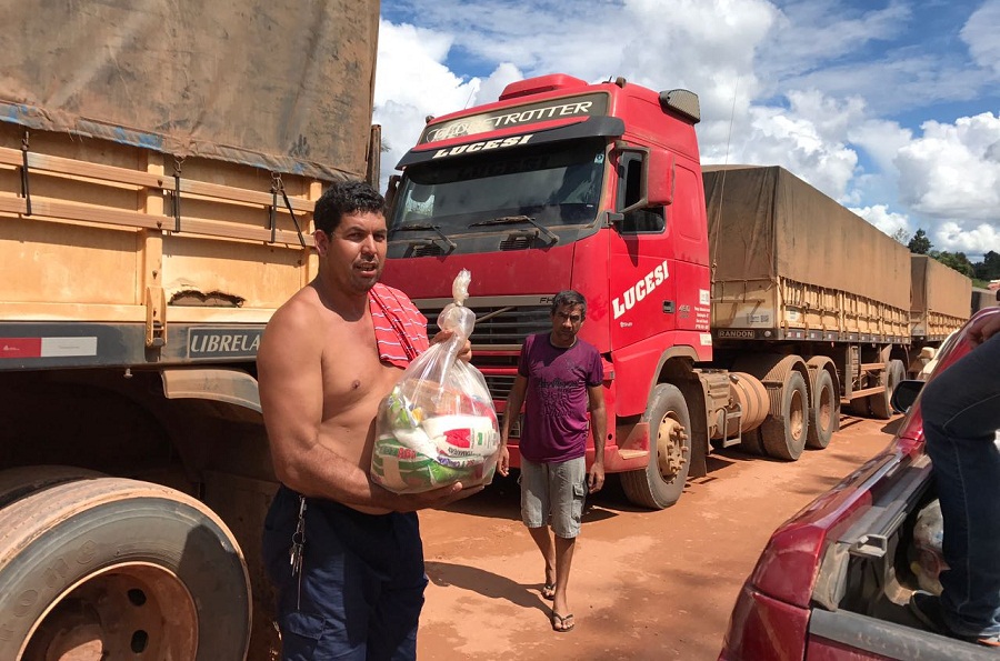 Os motoristas que estão parados na rodovia BR-163 no Município de Trairão começaram a receber cesta básica na tarde desta quarta-feira (01). Em Torno de 300 unidades foram entregues.