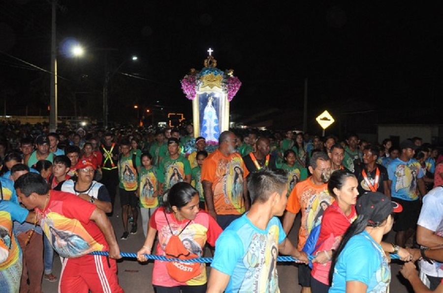 No meio da multidão, a berlinda com a imagem de Nossa Senhora, protegida por uma corda, iluminou os fiéis por todo o trajeto. O sacrifício era visível em cada rosto, mas o desejo de chegar até o fim falava mais alto. O sono parecia não existir diante da distância a ser percorrida. No trajeto, homenagens feitas por famílias e instituições públicas. No 8º Batalhão de Engenharia de Construção (8º-BEC), teve distribuição de mingau e em algumas casas, frutas, água e até geladinhos para saciar a sede dos peregrinos. Quem não caminhou teve a oportunidade de ajudar.