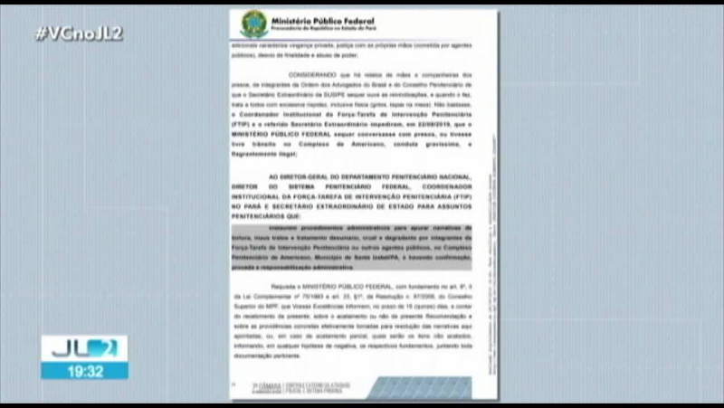 O Ministério Público Federal (MPF) no Pará investiga denúncias de tortura contra detentos no Complexo Penitenciário de Santa Isabel, nordeste do estado. Nesta segunda-feira (2), os procuradores enviaram recomendações às autoridades ligadas ao sistema penitenciário do estado e à Força-Tarefa de intervenção penitenciária que começou a atuar em presídios paraenses depois do massacre no Centro de Recuperação de Altamira, quando 62 pessoas foram mortas.