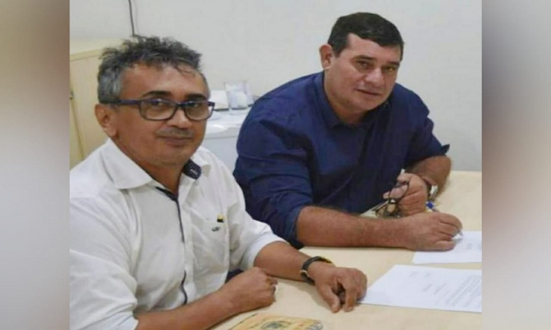 Secretário de Educação, à esquerda, de camisa branca ao lado do atual prefeito de Rurópolis, Joselino Taká Padilha, do MDB. (Foto: Reprodução)