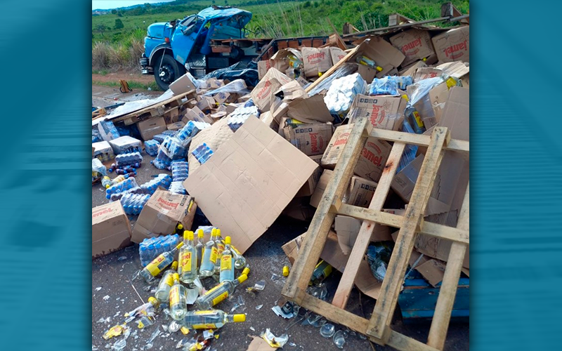 Um caminhão carregado de bebidas e mercadorias diversas, acabou saindo da pista e capotando na tarde desta sexta-feira (19), na MT-320, em Colíder.