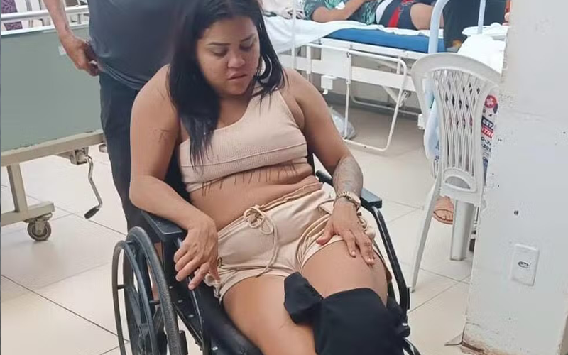 De acordo com informações da PM, ao chegarem ao local, as guarnições encontraram um táxi transportando a vítima, identificada inicialmente como Jocilene de Sousa Andrade, até a Unidade de Pronto Atendimento (UPA) 24h. A mulher estava acompanhada por familiares, incluindo o pai e irmão, e apresentava um ferimento na perna esquerda causado pelo disparo.