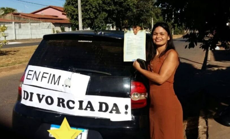 Após a consolidação do divórcio, ela decidiu comemorar o fim do seu casamento de uma forma diferente: colando uma placa em seu carro com a frase: “enfim, divorciada”.