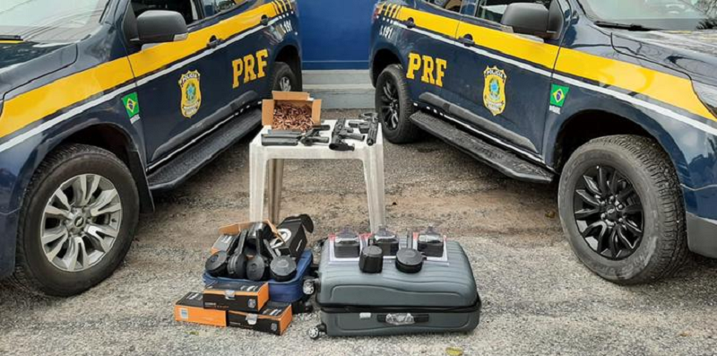 Armamento estava sendo transportado em malas de viagem (Foto:Ascom/ PRF)