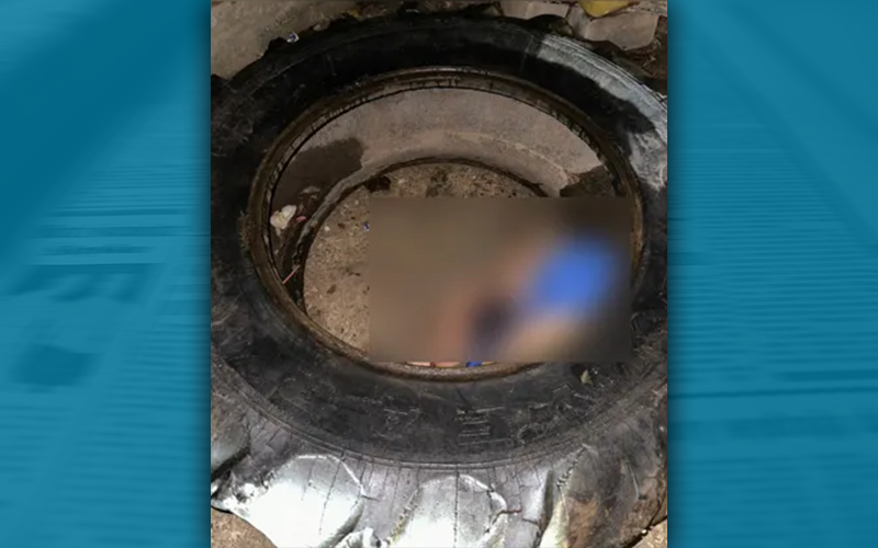 A mulher foi assassinada, possivelmente estuprada e brutalmente colocada dentro de um pneu de trator | Foto: Divulgação