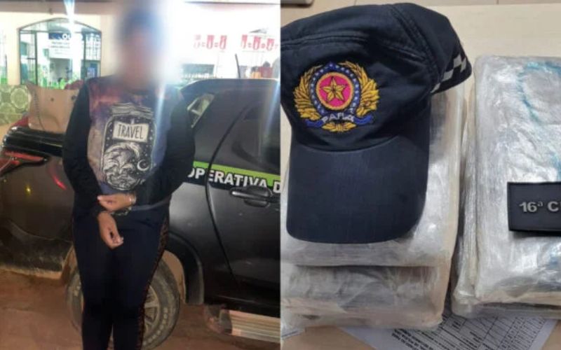 Foto: Reprodução | Suspeita demonstrou nervosismo durante abordagem policial; droga estava escondida em bolsas no bagageiro do veículo que fazia linha Itaituba–Marabá.