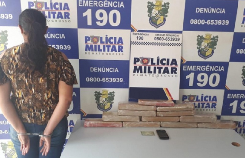 Uma mulher identificada pelas iniciais M.C.F, de 25 anos, foi presa por envolvimento com o tráfico de drogas, em Peixoto de Azevedo (691 km de Cuiabá), na terça-feira, (17). Os policiais encontraram 12 tabletes de maconha escondidos numa mala.